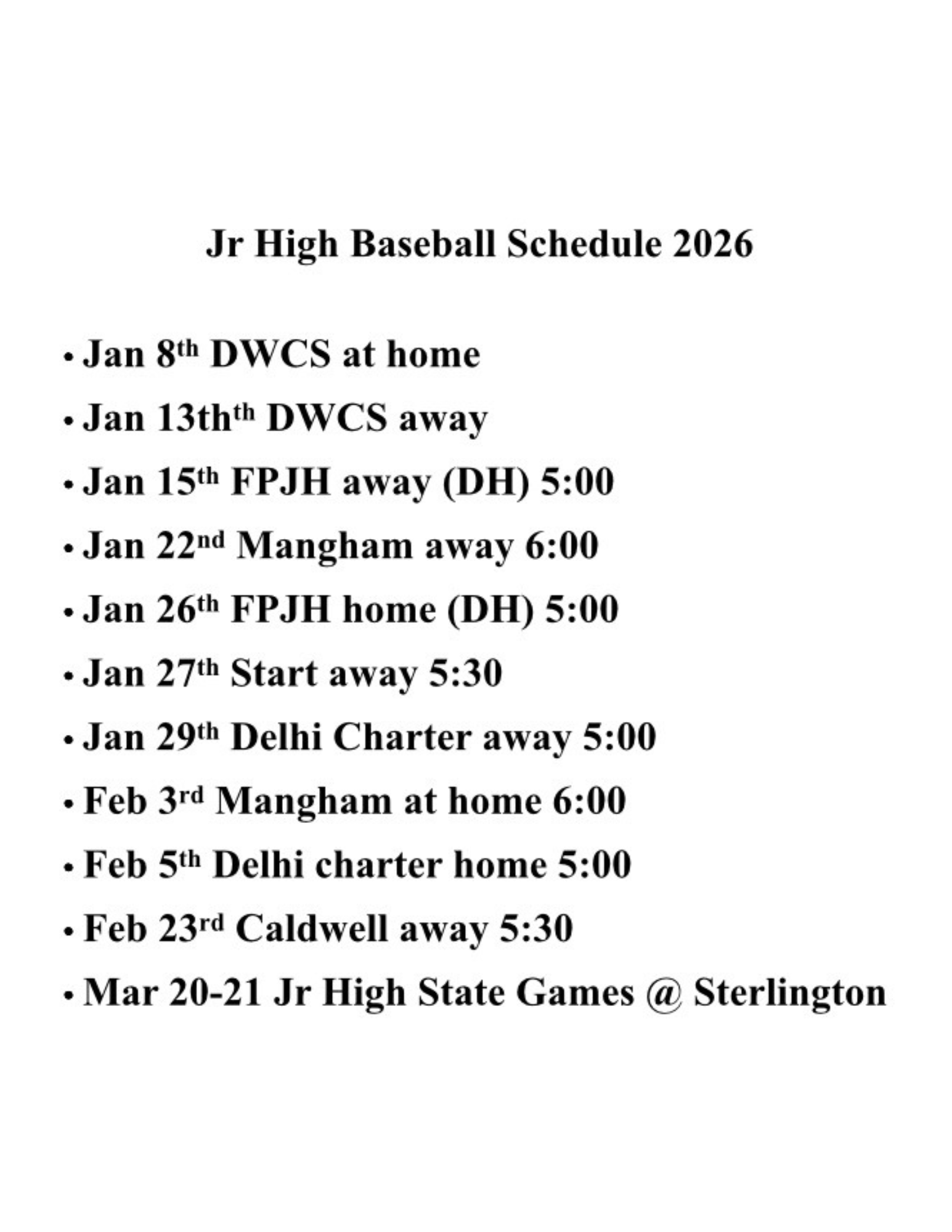 Jr. High Schedule: